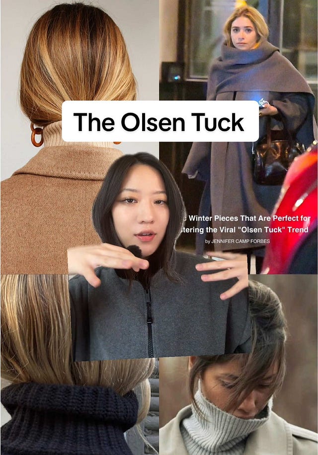 Sur Tik Tok, toujours friand de trucs faciles à adopter, le hashtag #Olsentuck fait florès comme sur Pinterest qui remonte les plus beaux street styles new-yorkais hérissés de cheveux boules expatriés depuis peu jusqu’au trottoirs de la capitale française. A Paris aussi, donc, voilà donc qu’on s’enroule dans son écharpe, quand on ne coulisse pas avec ce je-ne-sais-quoi d’effortless so parisien ses cheveux Dyzonés ou faussement négligés, pour donner à sa silhouette ce tracé powerful Anna W et à son visage des airs de petite souris.